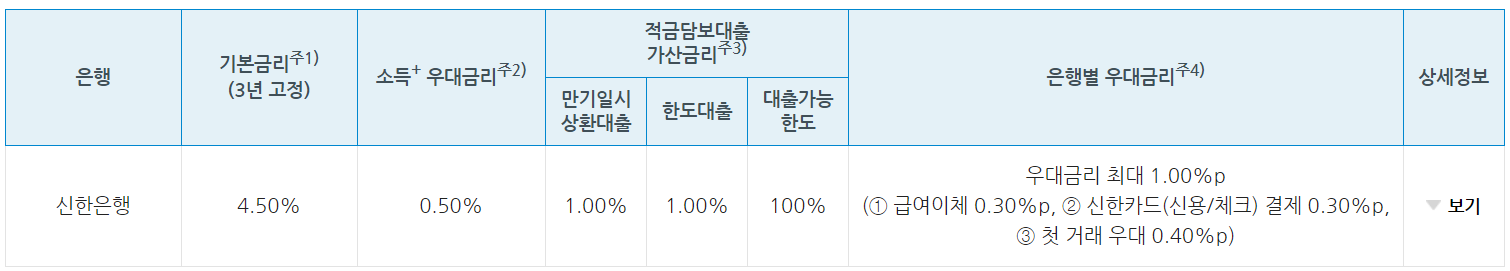 기본 금리: 처음 3년간 4.50%로 고정됩니다. 이후 가입 시기에 따라 변동 금리가 적용됩니다.