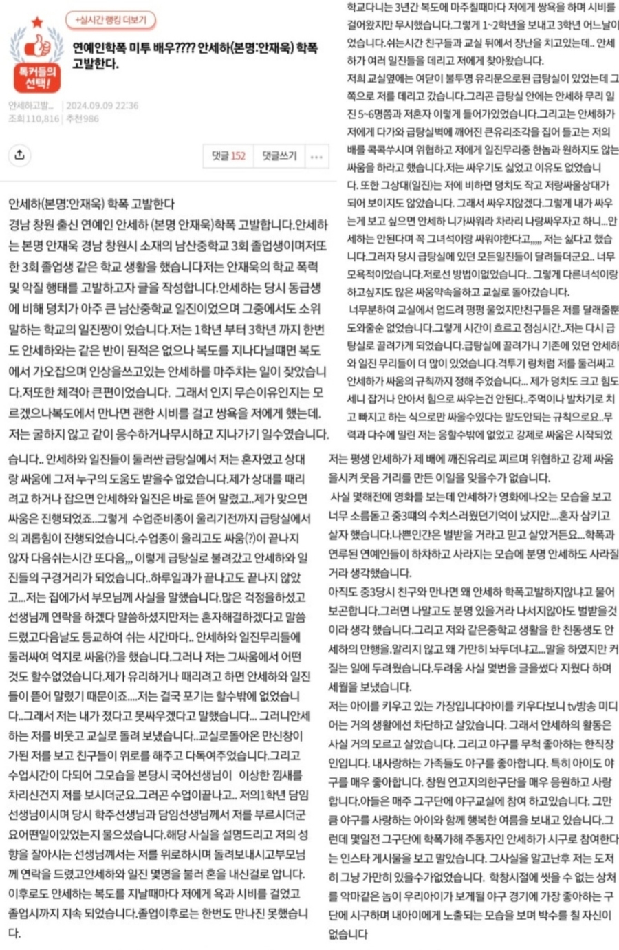 학폭 폭로 내용과 안세하 측의 대응