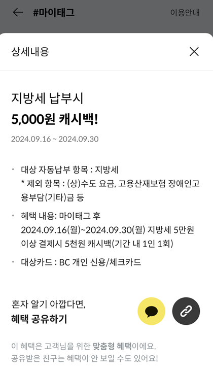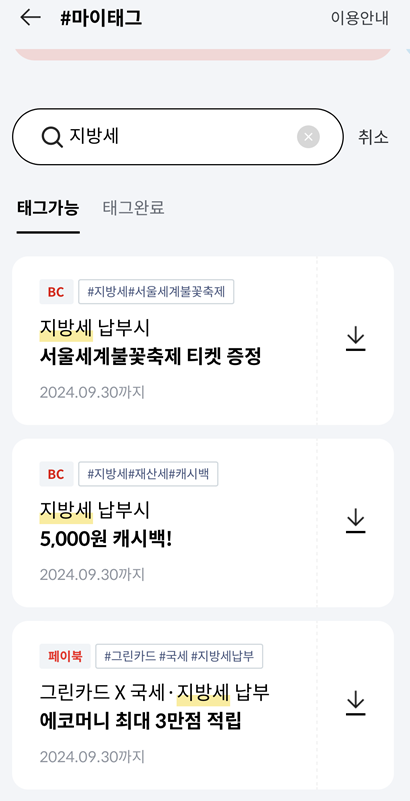 BC카드를 이용한 재산세 납부 혜택 - 5만원 이상 5천원 캐시백