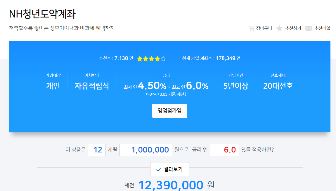 NH농협은행 청년도약계좌의 금리확인